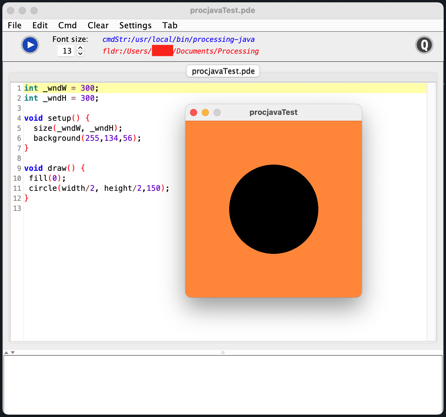 Intro: The demo below will create an entry level code editor for running Processing source code from the command line using the processing-java.exe file. It was developed and tested mainly on MacOS(M2); I was unable to get it to run on other platforms due to difficulty finding either processing-java or processing-cli for the other operating systems. There are five Tabs with additional code which are also shown below. This project was undertaken for proof of concept and for those users who, for one reason or another, do not want to use the official Processing IDE. My presumption is that processing-java.exe from the command line will function even if the official Processing IDE is not on the userâs system; this may or may not be correct (I have no way to test since I donât want to give up my official Processing IDE and do not have a new computer to experiment with). The exported app is smaller in size than the official Processing IDE (4.4.10) at 254.3 MB (including embedded Java) compared to 660.6 MB for the official editor. Without Java embedded this appâs size falls to 13.8 MB and still runs on my system.