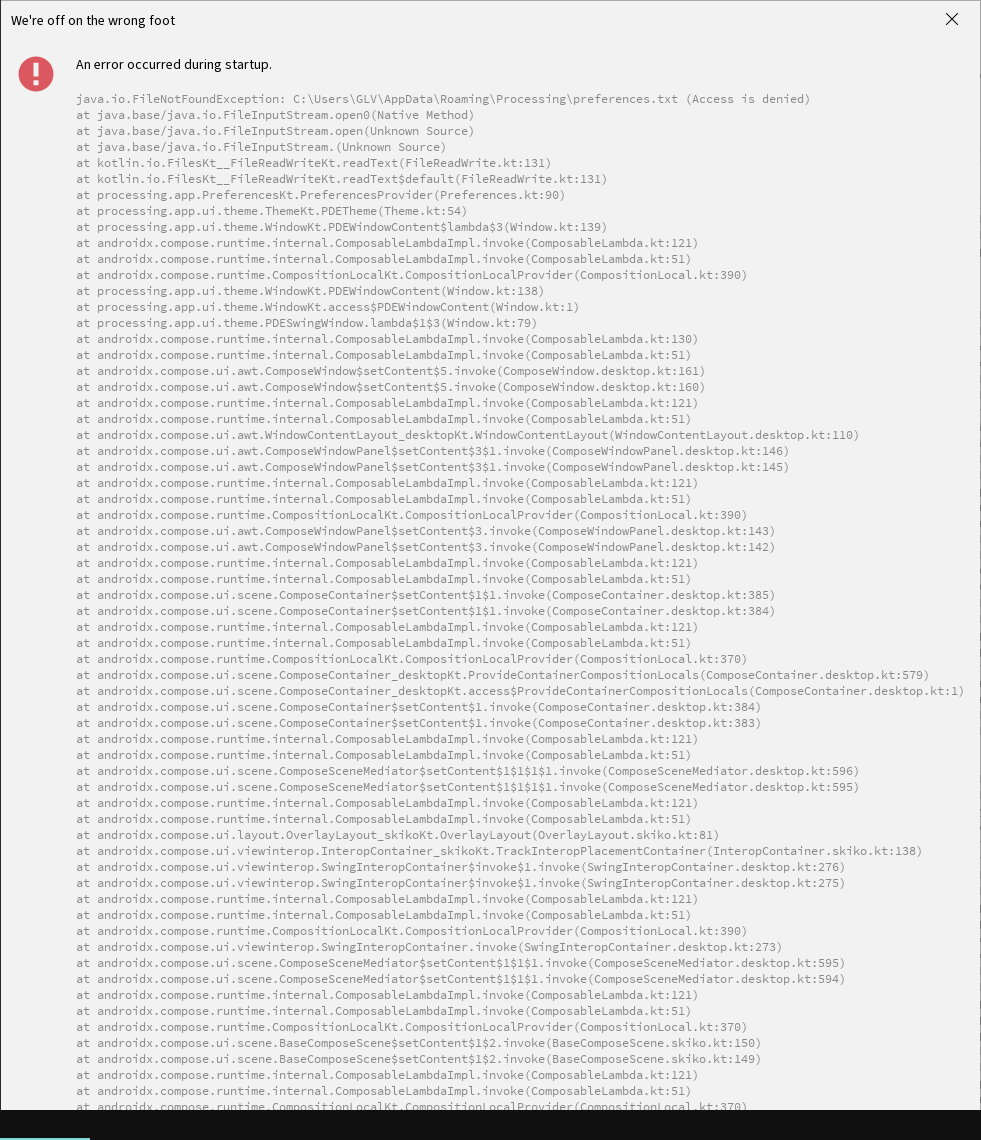 - Launching Processing 4.5.2 creates a preference.txt file in the new location and updates the default location.