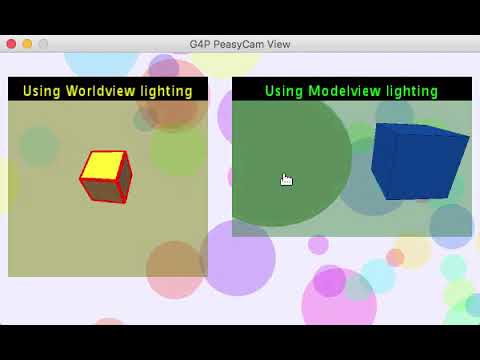 The video below shows a sketch with 2 PeasyCam views. You can see the video full size on my website alongside a programming guide discussing the source code of this sketch.