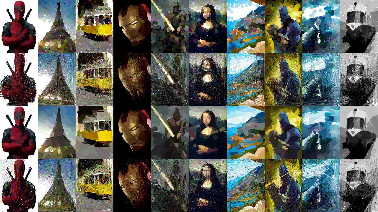 Hello there, here is my new project done with processing. I use a genetic algorithm to aproximate circles, triangles and lines to a target image. Would like to hear some feadback from the comunity. Have fun ![]()